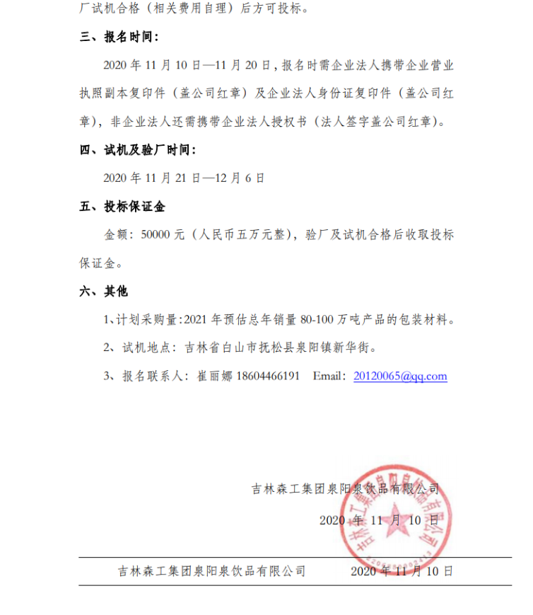吉林森工集團泉陽泉飲品有限公司